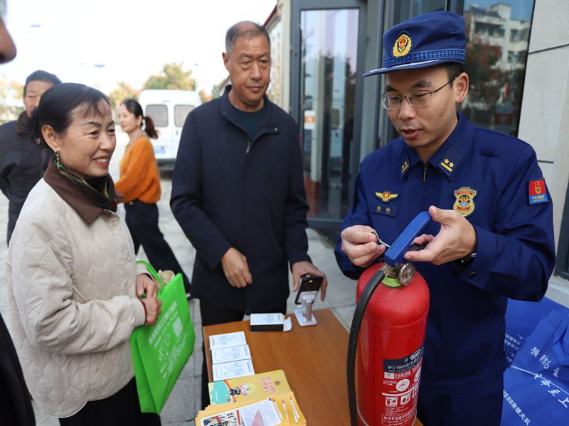 活动中,消防宣传员采取“唠家常”的沟通方式,结合秋季火灾防范特点,为老人们普及消防知识、传授消防技能。通过图文并茂的宣传资料,由浅入深向老人们讲解发生火灾时如何正确拨打“119”报警电话、如何逃生自救等实用的消防安全常识,并提醒他们在日常生活中要注意用火、用电安全,叮嘱老老人们做到“三清三关”,即居家、旅游或外出前要及时清理阳台、厨房和楼道里的杂物,并及时关闭电源、火源、燃气的开关,以消除火灾隐患。同时,消防宣传员现场教学了灭火器“提、拔、握、压”使用口诀及火情处置关键要领。